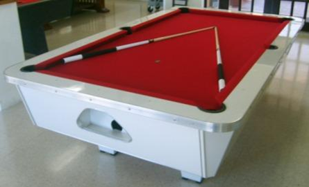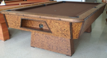 Our coin-operated tables are made with a very complex mechanism that split the numbered balls from the cue ball, while locks all the balls when the game is over until the predetermined amount of coins are inserted again. We have more than 20 different laminated sheets available that you may combined with up to 25 different cloth colors.